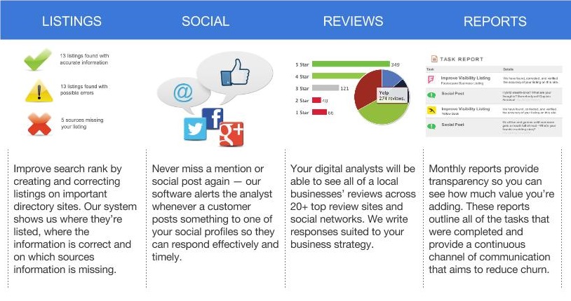 Local businesses love the idea of Reputation Management. They understand the advantage of engaging with their customers on social media, and they know how important it is to have accurate business listings. There’s just one problem: they’re too busy running their business to maintain a good web presence.