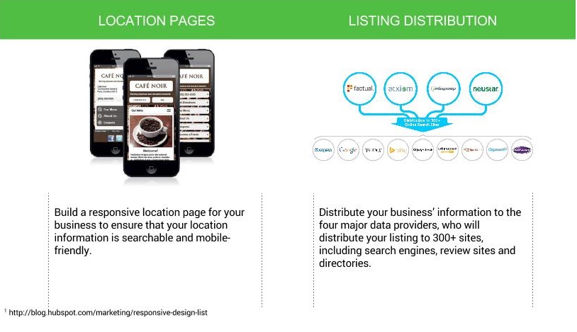 Presence Builder can unify your brand so you only need to create and maintain one set of common data across desktop, mobile and social platforms. Meanwhile, Listing Distribution (optional) will ensure your data is consistent and accurate across 300+ popular sources.
